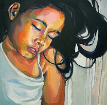 I like painting people pretty much exclusively. I also like painting animals but mostly just people, and mostly just faces. I really want try painting other things like cityscapes but I am actually a little scared to even try. I am scared that my already scant attention span will make it impossible for me to get through something that isn't a human face. I think I like the challenge involved with trying to capture someone's expression exactly. I do not mean exactly as from a photo (though I do work mostly from my own photos) but exactly as in capturing the essence of what they are feeling in that exact moment. I think this is why I really enjoy painting with harsh light. Maybe I will explain that more later.